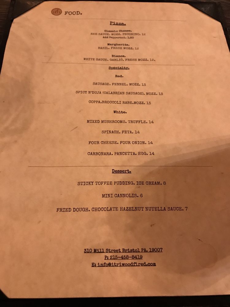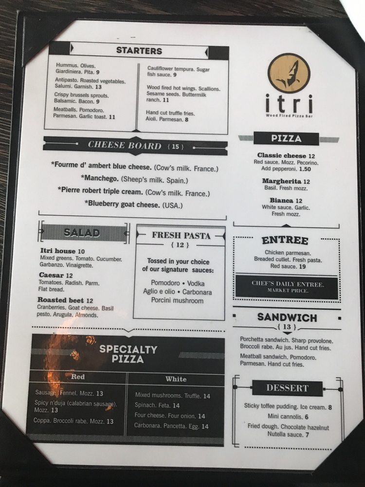 Itri Wood Fired Pizza Bar Menu